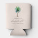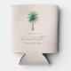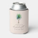 A bachelorette party can cooler featuring a watercolor tropical palm tree and "bachelorette" in modern script font. Personalize with name and date.
