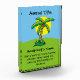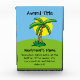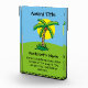 Cartoon illustration of a palm tree. Custom background color. Custom text.