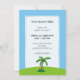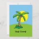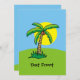 Cartoon illustration of a palm tree. Custom background color. Custom text.