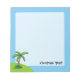 Cartoon illustration of a palm tree. Custom background color. Custom text.