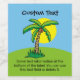 Cartoon illustration of a palm tree. Custom background color. Custom text.