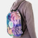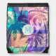 This drawstring bag features your monogram initial on a collage of turquoise, blue, purple, orange and pink tropical palm trees. Create for yourself or give as a gift.