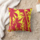 Tropical Palm tree design in a red and yellow posterised effect. Bold design cushion with natural pattern of trees. Tropical Palm trees.