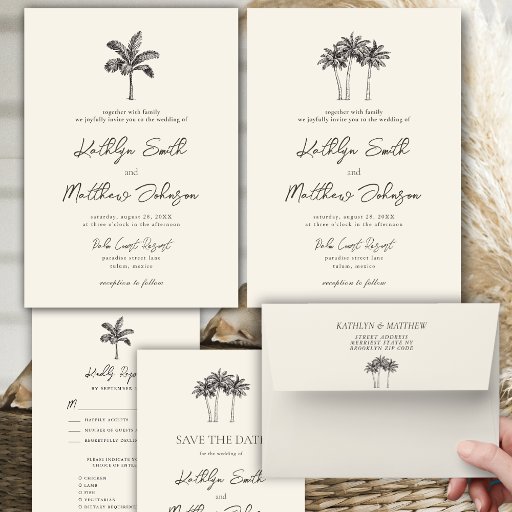 Palm Tree Ivory Minimalist Destination Wedding Alphabetical Table Seating Charts Poster. All the texts are pre-arranged for you to personalize easily and quickly with your own details.