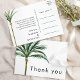 This palm tree destination wedding thank you postcard design features tropical watercolor palm trees on a bright white background that evoke the dreamy ambiance of a destination wedding. this design radiates the romance of sandy shores and swaying palms, perfect for couples seeking a truly unforgettable celebration. For personalized coordination or any questions, please don't hesitate to reach out.