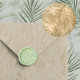 Before the wax hardens, gently and evenly press the wax seal stamp into the melted wax, ensuring it's centered.