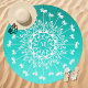 Enhance your beach day style with this Palm Tree Mandala Monogram Aqua Gradient Beach Towel. Featuring a refreshing aqua gradient backdrop, this round towel showcases a detailed mandala pattern with tropical palm trees, swirling accents, and a personalized monogram in the center. Ideal for lounging poolside or at the beach, this towel combines vibrant design with a personal touch, making it a unique summer essential.