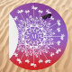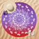 Embrace tropical vibes with this Palm Tree Gradient Mandala Monogram Purple and Red Beach Towel. Featuring a bold gradient from purple to red, this round towel showcases a beautiful mandala design with palm trees and swirling patterns, creating a unique and eye-catching look. Add a personal touch with your monogram to make it truly yours. Perfect for beach outings, poolside lounging, or as a vibrant summer accessory, this towel combines style and function in a stunning way.