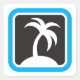 A palm tree icon with a black background and blue frame. This design looks really effective on these Stickers