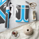 A palm tree icon with a black background and blue frame. This design looks really effective on these Wrapping Paper