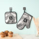 Palm Tree Leaves Black & White Abstract Monogram Oven Mitt & Pot Holder Set