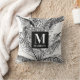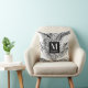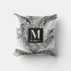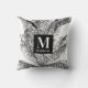 Palm Tree Leaves Black & White Abstract Monogram Throw Pillow