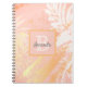 An elegant, modern tropical summer abstract pattern. Coral, rose gold, pink background, and white palm tree leaves. Decorated with faux gold brush strokes. Add your name and monogram letter.