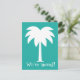 Tropical palm tree moving postcards for new home in warm destination. Custom move text; We have moved! Add your new change of address on the back. Modern new house cards for home and business. Tropical palmtree design with cute typography. Also great for honeymoon vacation / wedding holidays.