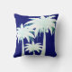 Palm Tree Navy Blue Summer Green White Tropical Throw Pillow