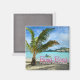Souvenir photo magnet of a palm tree on sand beach of a luxury overwater thatched roof honeymoon resort on the tropical island Bora Bora, near Tahiti in the pacific archipelago French Polynesia with the text: 'Bora Bora, French Polyensia'.