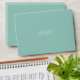 Palm leaf pattern with aqua color palette on inside with address on front and white palm tree illustration on flap. Address templates on front and back flap.
