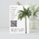 Palm tree, wedding QR code reply cards with tropical theme. One tall palm tree stands out over the white background on small, vertical cards. Create your own code to add to the template and make it simple for guests to reply to the wedding, showers or other large events. A short paragraph of text can be added to the left side asking guests to reply by a certain date. The back of the card has an image of palm tree bark.