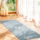 As a yoga mat, it is comfortable to use. I place a second mat under it for added comfort. But I mostly use this particular mat design for "Distance Reiki". (I am a graphic designer but I also do distance reiki work and needed something full size to work with my clients so I designed this for that purpose. The Chakras are highlighted and make it easy to place charkra stones over. I use a pendulum and tuning forks to balance the body's energy, and this helps me know, with greater detail, what part of the clients body I am connecting to when I feel fluctuations in the energy field. I am very pleased with how my design turned out. The background is very complex with color gradations and with text at the bottom. The text is readable and I am pleased with the detail in the graphics.