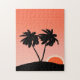 Palm Tree Silhouette Against Sunset Orange Jigsaw Puzzle