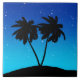 Palm Tree Silhouette on Evening Blue with Stars Ceramic Tile