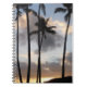 Stunning scenery of Hawaii at twilight with the fading light creating silhouettes of the palm trees and coast line.