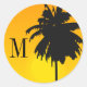 Customizable Wedding Favour Labels with Palm Tree Sunset and monogram. Customize with your initial or text