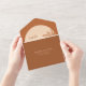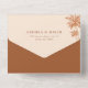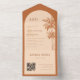 Surprise your friends and family with these elegant all in one wedding invitations, featuring terracotta background, cream arch, palm trees and your custom text and QR code. Easily add your own details by clicking on the "personalize" option.