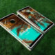 Palm Tree Turquoise Sky Family Name Cornhole Set