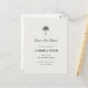 This save the date postcard features simple typography focal on the silhouette of a palm tree in black on ecru for a modern and minimalistic Save the Date postcard for your upcoming wedding. All text is editable to fit your personalized needs.