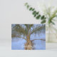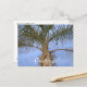 Greetings is written in white text. Pretty close-up looking towards top of tropical palm tree with fronds spread out against a blue sky as evening was approaching. Picture taken at Point Pleasant Beach Boardwalk, Original Photography by TamiraZDesigns.