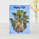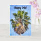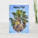 My original artwork is featured on this vacation wishes card, consisting of my original photograph of a palm tree. Image was processed with a watercolor painterly effect for an illustrated tropical appearance. The front of the card states, "Happy Trip!" and the inside of the card states "Wishing you great times and relaxing moments as you leave on new adventures!". A great card for anyone going on a trip or vacation to the tropics or tropical area.