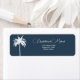 A blue and white Palm Tree elegant personal return address labels. An elegant palm tree is over the names.