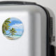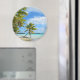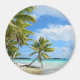 Palm tree white sand beach round magnet