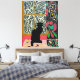 Palm Tree Window with Black Cat Canvas Print