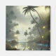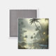 Beautiful palm trees and ocean at dusk with pretty lights.