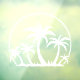 Vector illustration of a tropical sunset and palm trees on a small vacation island paradise. Keywords: beach, caribbean, cartoon, illustration, island, isle, palm, palmtree, paradise, sea, season, silhouette, summer, sun, sunrise, sunset, tree, tropic, tropical, vacation, vector, palms