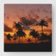 Palm Trees at Sunset - red Square Wall Clock