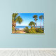 Canvas print featuring a peaceful morning view of some palm trees in Gulf Breeze, Florida, United States. There is a table and chairs under the trees making the perfect spot to relax and enjoy the view. Looking for more prints or products? Feel free to visit my store: http://www.zazzle.com/timelessmomentsphtgy This photo was taken by Jennifer White with Timeless Moments Photography. All images are copyrighted © Timeless Moments Photography.