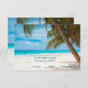 Palm Trees Beach Destination Wedding RSVP Cards with Meal Choice Options. A beautiful beach scene with palm trees leaning over the sand and the ocean in the background. Perfect for a beach wedding or destination wedding.