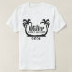 Font Style, Size, and Color can be customized to fit your needs. Shirt size, color, and style can be also be changed. Black image of 2 palm trees in beach sand.