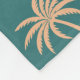 A mid century, retro pattern of white, green and light brown palm trees and white and blue clouds, against a darker green background.