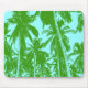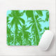 Tropical Mouse Mat. Bold palm trees design in a posterised style. Tropical palm trees. Green on a light blue background.