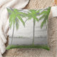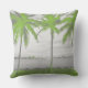 This design has a retro vintage look; Natural and nautical scene; bodies of water and ports; Miami, Florida; Palm trees overlooking the Atlantic Ocean with some boats and cruise ships off in the distance. Light green and gray/grey colored theme. This pillow is a great complement to your tropical ambiance inspired home decor or backdrop.