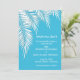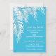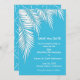 White palm fronds on a blue background (You can change to any color background!) on these SAVE THE DATE CARDS for birthday party invitations, bridal shower invitations, retirement party invitations, wedding invitations and more, just change the wording. Click CUSTOMIZE to change the background color, the fonts and to add wording. See invitations and MATCHING items in our store ---> http://bit.ly/2UyWIVj <---