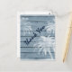 ~This beach themed thank you postcard design features a palm tree overlay on a rustic wooden background in shades of blue and white.
