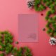 Illustration of two foil palm trees at left with foil text at bottom right. Background is pink.