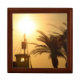 Palm Trees Ship Sun Cool Tile Gift Box, Golden Oak Keepsake Box