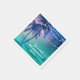 Elegant, watercolor palm trees string of lights beach wedding napkins that you can personalize for your Big Day! The unique, tropical design features 2 watercolor palm trees with romantic strings of party lights draped across the top of a starry night sky. Easily add in your own personalized text to these watercolor napkins, be it for a beach wedding, a tropical themed birthday party, or any other special event where a blend of teal, blue and pink match the decor. Category: beach napkins; palm tree napkins; and tropical watercolor napkins. Colors: blue, teal, pink and peach.