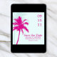 Beautiful palm trees wedding save the date announcement, perfect for destination and summer weddings.